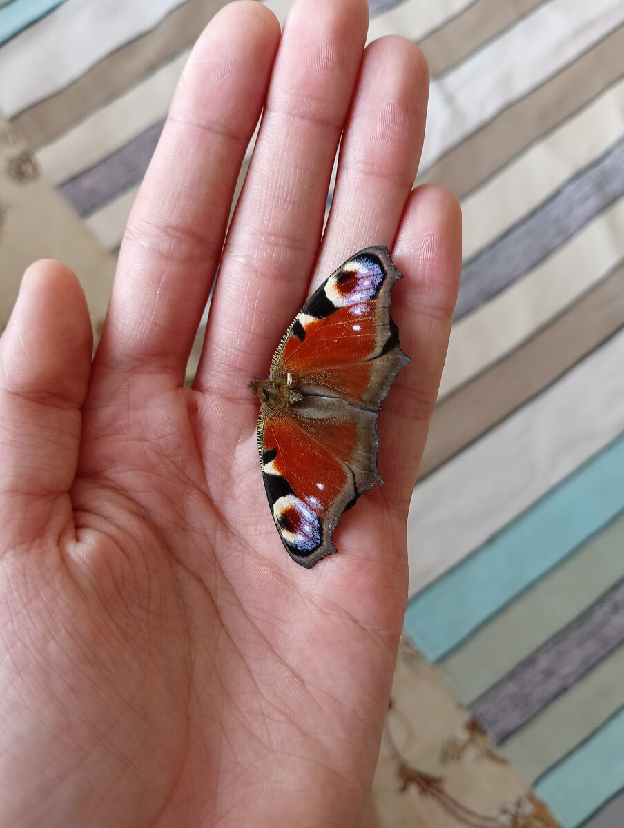 Увидел мëртвую бабочку. Очень красивая😍. Если кто не знал, то она называется павлиний глаз.