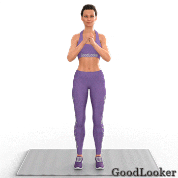 Как выполнять: Руки сведите за головой. Немного наклоните корпус вперед, после чего совершите классическое приседание. Затем встаньте, сделайте низкоамплитудный прыжок, одновременно расставляя ноги шире плеч, и совершая новое приседание. По такой методике выполняем нужное число повторений.