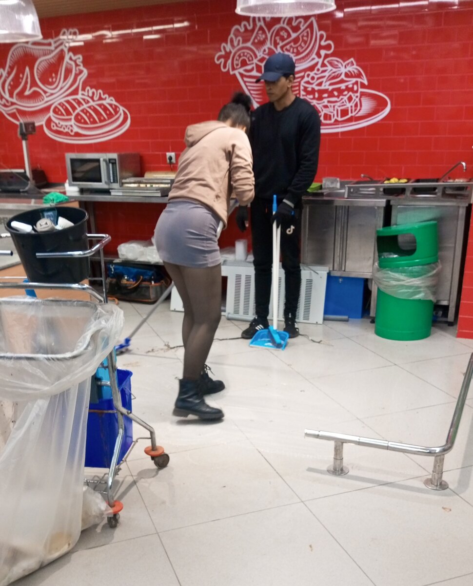 У нас в супермаркете уборщиками работают кубинцы. Два грузчика Фернандо, Рауль и девушка Алиса. Интересные персонажи. Всё время бормочат по-испански и им сложно объяснить, что ты от них хочешь. Алиса это вообще аут! Она работает со шваброй, будто ходит по берегу Карибского моря. А одевается она так, словно пришла в ночной клуб. Знаете, такой деревенский клуб. То она в розовых лосинах и больших пластмассовых очках на пол лица. То она вся в белом, будто свадебное платье. То в мини юбке. Многие покупатели начали к ней приставать. Недавно один мужик с ней заговорил по-английски, хотел куда-то пригласить. После этого директриса захотела заставить всех молодых сотрудниц ходить в мини юбках. На Алису бесполезно орать и делать замечания, она только улыбается в ответ. Ей пофиг на все. Ты можешь встретиться с ней в узком коридоре, у тебя в руках будет коробка, но она не уступит дорогу. Я не удивлюсь, если однажды прийду в раздевалку, а там на полу белый песок, Фернандо и Рауль с бутылкой рома с
