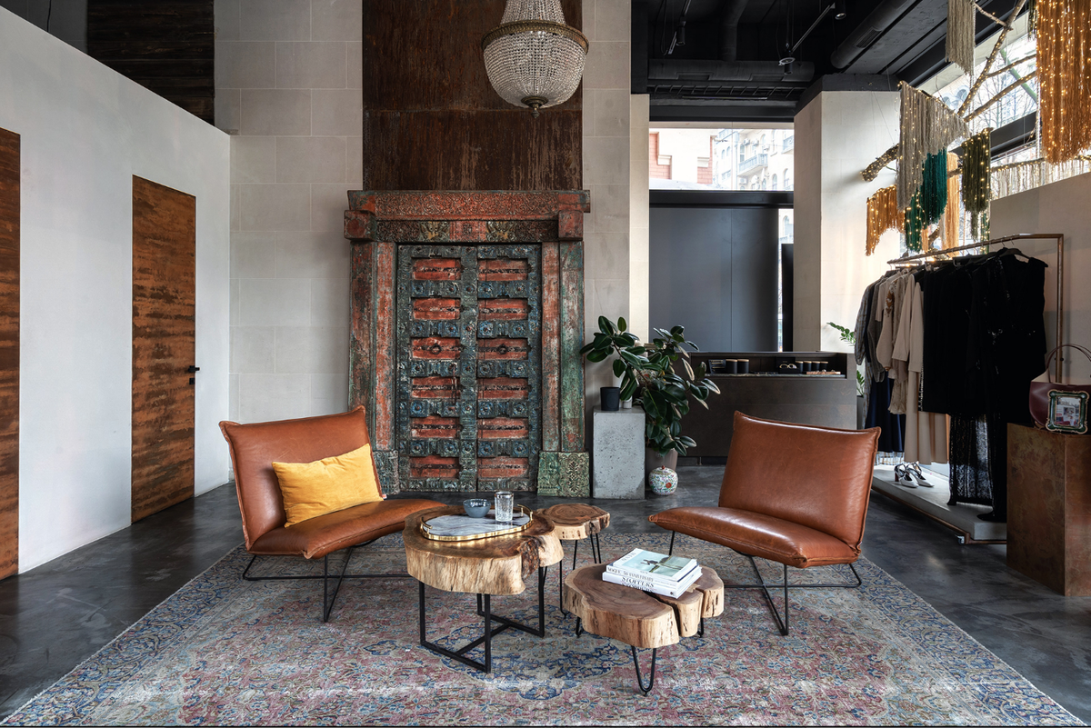 Проект расположен в историческом центре Киева. Это новый концептуальный магазин и кафе, сочетающее в себе богемный вкус к винтажным находкам и оригинальную мебель с индустриальной эстетикой. Дизайнеры из MODEKTURA studio решили вернуть пространство к его структурной основе, чтобы увеличить высоту потолка и подчеркнуть его первозданную красоту. Приглушенная цветовая палитра стен из песчаника, бетонных полов и окрашенного в черный цвет потолка создает нейтральный фон для выбора дизайнерской одежды, аксессуаров, книг и парфюмерии. Акценты из состаренного дерева, латуни и оксидированного металла добавляют текстур интерьеру, а полы из терраццо выделяют зону кафе.