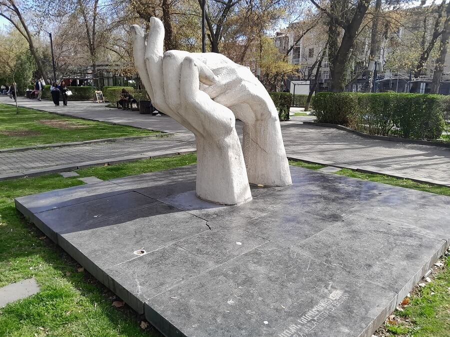Друзья! Продолжаем публикацию авторского цифрового маршрута по достопримечательностям Еревана (Армения) от гида Ашота Левоняна. Автор маршрута, Ашот Левонян, один из лучших гидов в Армении, уже рассказал про Ереван, Парк Победы, Каскад, Оперный театр, Северный проспект, площадь Республики, Вернисаж, район Конд, Дом-музей Сергея Параджанова, коньячный завод «Арарат», винодельню «Кегар», Храм дедушки Левона, собор св. Эчмиадзина, Детский центр «Мачаненц» в Ереване. Сегодня публикуем рассказ Ашота Левоняна про памятник «Руки дружбы». Памятник «Руки дружбы» GPS-координаты: 40.187417, 44.520512 Памятник «Руки дружбы» находится на Кольцевом бульваре в центре Еревана. Он был подарен Еревану итальянским городом-побратимом Каррара. Этот город известен как центр добычи и обработки природного белого мрамора, именно здесь выбирал материал для своих работ сам Микеланджело. В 1965 году в Карраре состоялось международное биеннале по скульптуре, в котором приняли участие советские скульпторы, в числе