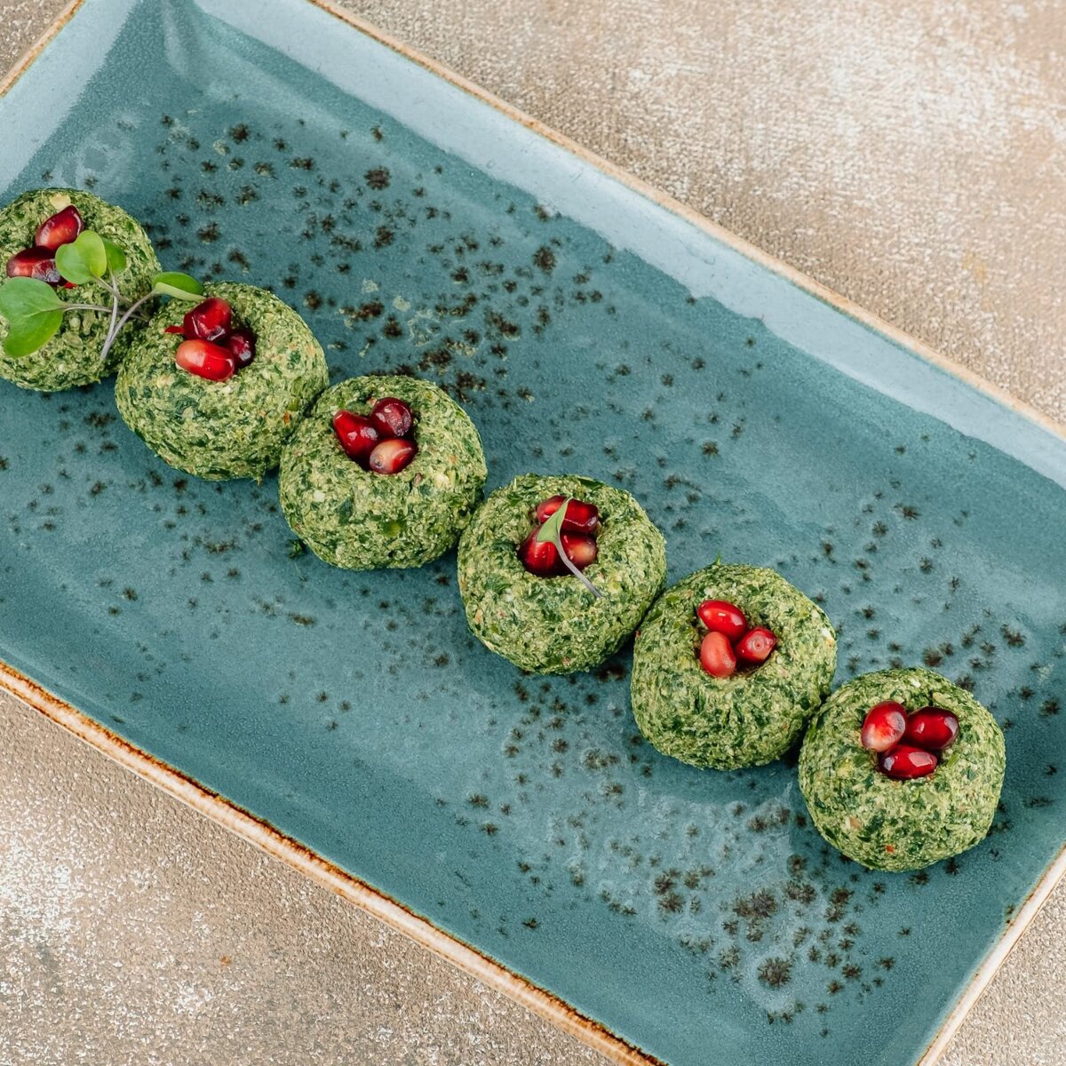 Затем очень важно скатать в маленькие шарики, выложить на красивое блюдо, по желанию украсить зернами граната. Закуска готова, можно дегустировать. Приятного аппетита!