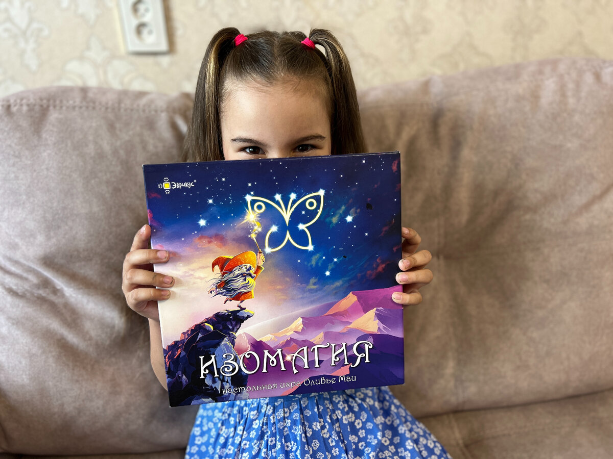 Мы любим играть в разные настольные игры, постоянно смотрю разные обзоры, чтобы выбирать не только интересные, но и полезные развивающие игры. Сегодня хочу вам рассказать про замечательную игру от компании"Эврикус", Изомагия. Производитель рекомендует игру с 8 лет, но можно с 5-6 лет точно. Условия простые и интересные. Играть можно от 1-го человека и до 8-ми. У игры красивая история, все игроки становятся магами, но не простыми, а Изомагами, вы сможете вызывать и создавать удивительные формы на небе или воде. Опытные маги утверждают, с помощью этих заклинаний можно даже украшать сны. Но в начале любого пути нужно пройти обучение магическому рисованию. Каждый раз рисуя Волшебное заклинание на игровом поле появляется таинственный узор. Главная задача игрока (изомага) быстрее всех расшифровать рисунок, что именно у вас получилось. Как и в любой новой игре, необходимо заложить время на игру. А в этой игре еще есть экспресс-объяснение. Чтобы быстрее разобраться новичку производитель приду