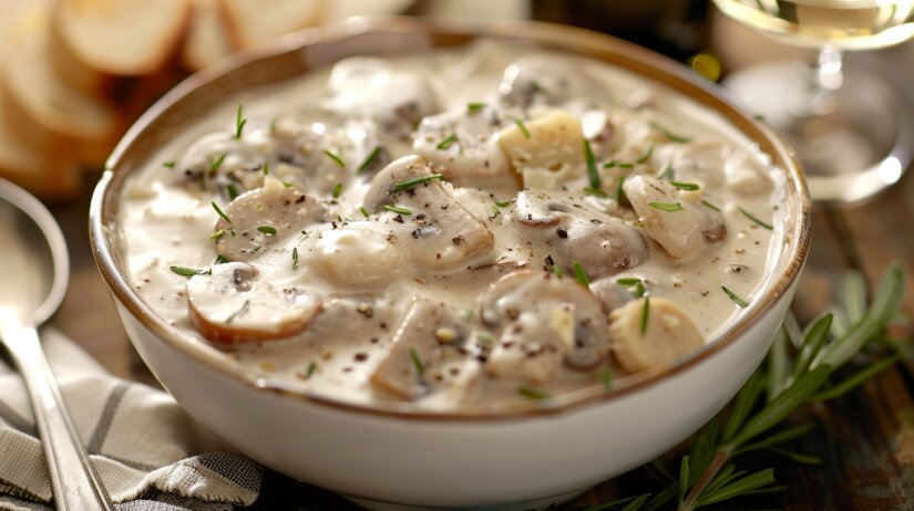 Сливочно-винный соус — это элегантное и утонченное дополнение к различным блюдам, особенно популярное в французской кухне. Его богатый и нежный вкус идеально подходит к рыбе, курице и морепродуктам. История этого соуса восходит к традициям французских шеф-поваров, которые используют вино и сливки для создания изысканных соусов, подчеркивающих вкус основных ингредиентов. Ингредиенты Пошаговый рецепт Советы по хранению Сливочно-винный соус лучше всего использовать сразу после приготовления. Если необходимо хранить, поместите соус в холодильник в плотно закрытом контейнере до 2 дней. Перед повторным использованием подогрейте на медленном огне, добавив немного сливок или вина, если соус стал слишком густым. Полезные свойства основного ингредиента Сливки являются богатым источником кальция и витаминов A и D, которые важны для здоровья костей и иммунной системы. Белое вино, содержащее антиоксиданты, помогает улучшить пищеварение и поддерживает здоровье сердца. Интересные факты о соусе Сливоч