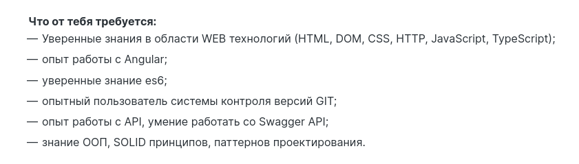 Требования к вакансии anguar-разработчик