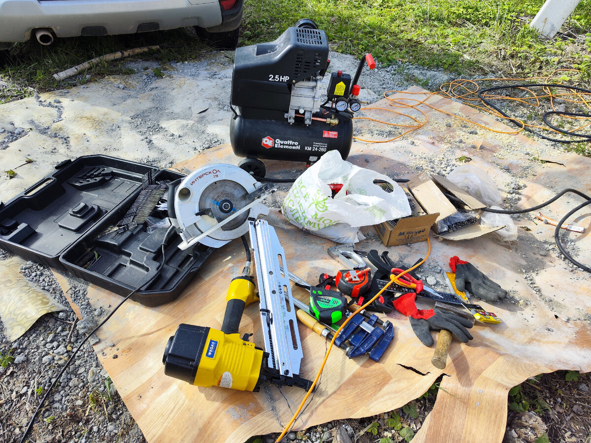 Всем привет! Каркас стен готов! Суммарно по времени строил 23 часа, если брать в расчет, что строил по 6 часов максимум, то 4 дня на это потратил. Шел точно по графику 1 стена в день. Глухие стены собрал быстро. А вот стены со входной дверью и окнами я собирал долго: то размер не в размер, то ещё что-то. Я уже забыл, что проект чертил приблизительно и хорошо, что перед сборкой сверил размеры окон и двери, пришлось вносить изменения по месту. Стойки каркаса выполнил из доски 50*100мм. Хедер над окном и дверью из сколоченной доски - 100*150мм. Везде где плотно соединяются доски, между ними положил джут, для утепления и устранения мостика холода. Доски конечно в этот раз мне привезли отменные. Большое количество времени ушло на сортировку и подгонку каждой доски. То чуть-чуть в бок повело доску, то винтом выкрутило. Хорошо, что заказал пиломатериал с запасом - все кривые на леса пойдут. Совет: не заказывайте пиломатериал зимой для того чтобы подсох к лету, если не уверены в поставщике