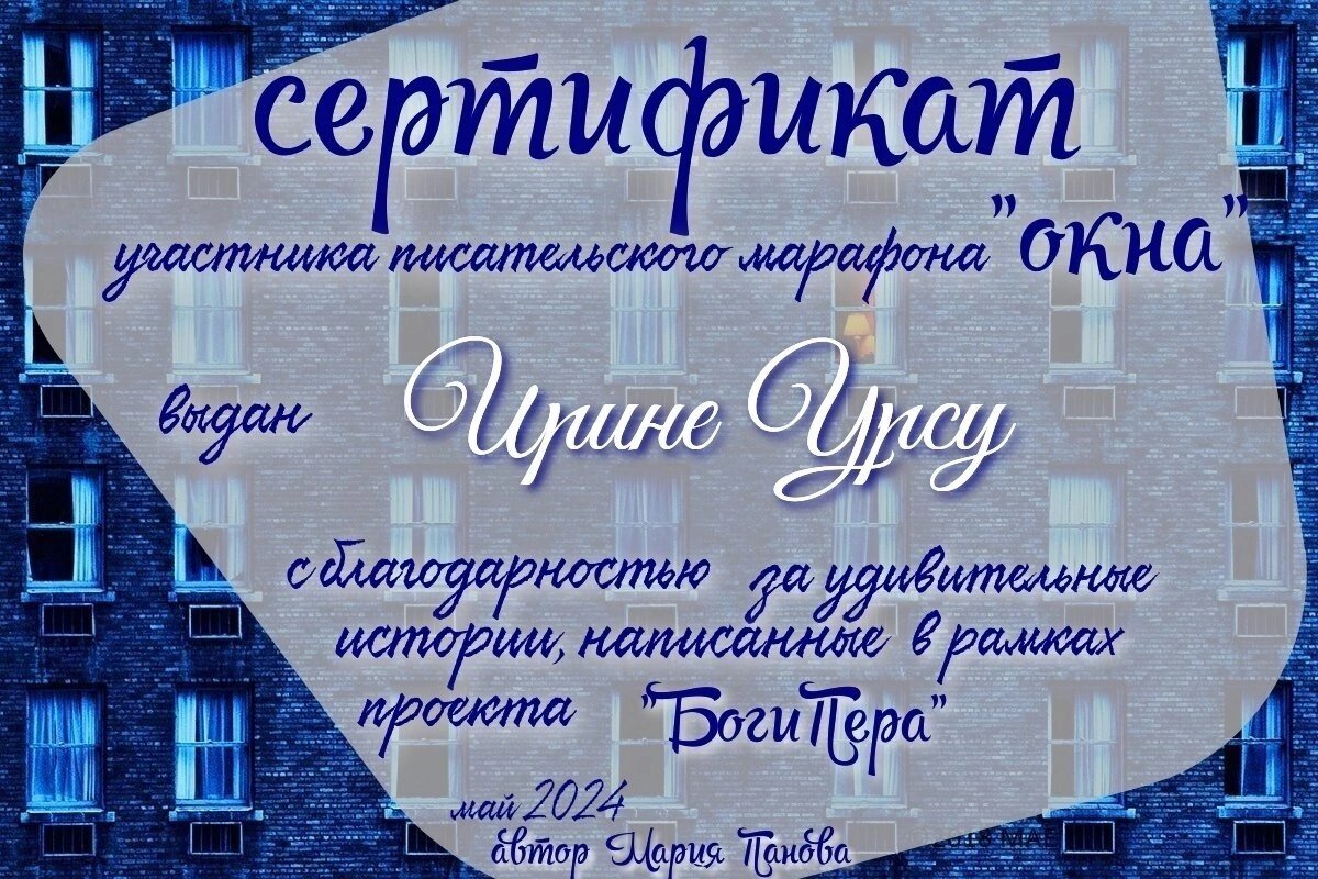 С удовольствием участвовала в писательском марафоне "ОКНА"Заглянули в пять окошек.Интересно было.Благодарность организатору и всем участникам.Надеюсь, встретимся вновь.