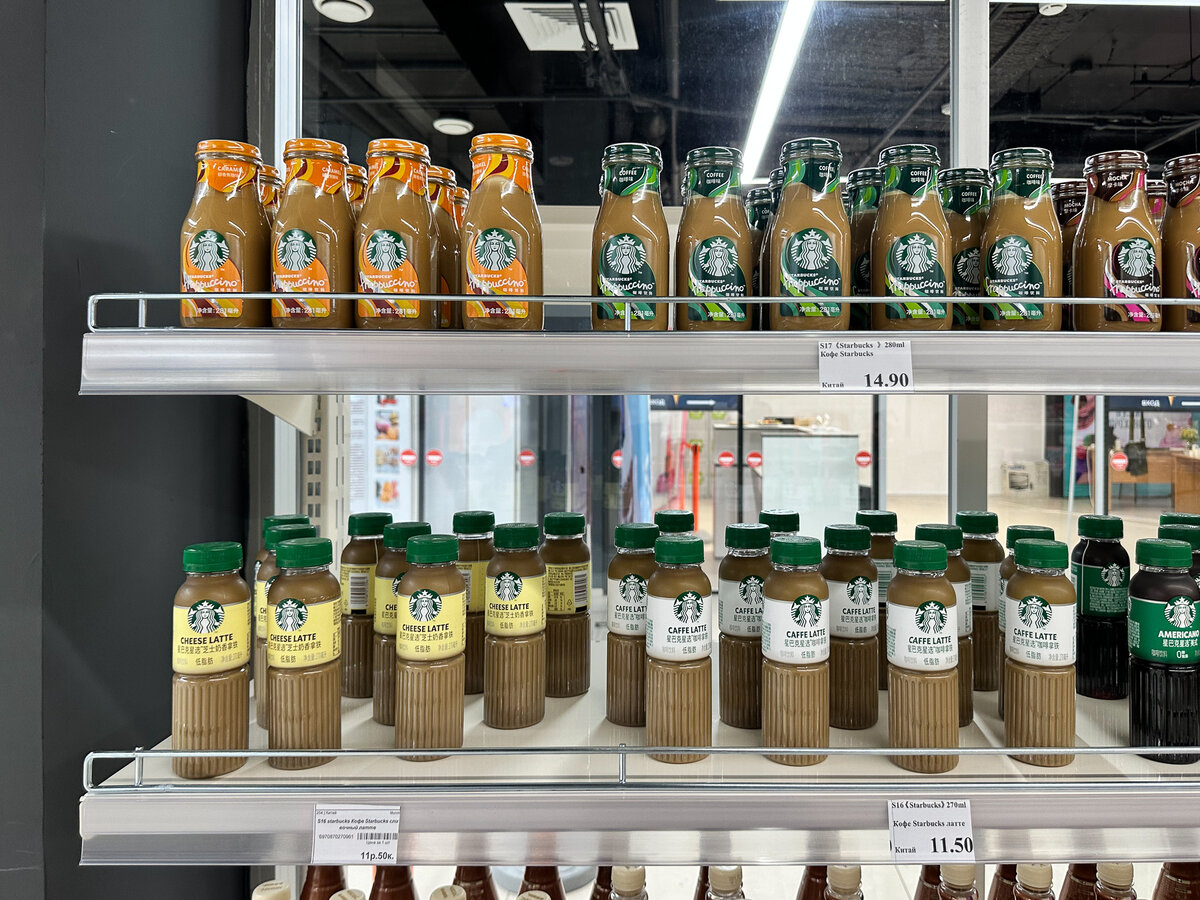 Сырный кофе «Старбакс» - вкусно, но 11,50р, китайский «Юппи» по 2,75р - приготовь лимонад в пакете с трубочкой. Странные матча моти за 14,53р, китайский Скиттлс, желейный сок из фруктов в стакане за 8,10р.