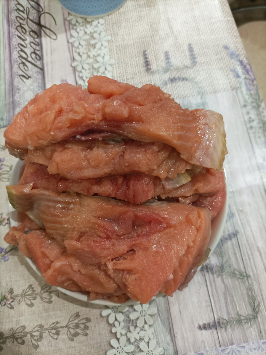 Вот такая вот РСП злая мачеха, прям как в сказке!) Своим-то чего получше, а мужниным по остаточному принципу). Учили-учили вы меня себя любить, и я, кажется, научилась😂. Теперь, чую, обратные предъявы пойдут). Всем привет, с вами Ольга). Сегодня коротко про каструльки. Уже и рыбу-то эту давно съели, а у меня только руки дошли о ней написать). Конечно же, красная рыба - это ни что иное, как банальная горбуша из светофора). Ну чем вам не красная рыба?) Приготовила я её в мультиварке со сливками и овощами). Итак, всё банально и просто). Горбушу разделала от головы и костей, сняла шкуру и порезала на куски Из головы и хребта потом ещё и уху сварю, убрала пока в морозилку. Цветную капусту тоже купила в светофоре Перец из пятёрочки по акции. Половинку пустила на щи и половинку вот сюда Кабачки тоже были в пятёрочке по 99р за кг. Взяла один маленький В морозилке у меня лежала начатая пачка стручковой фасоли. Тоже когда-то купила по акции и понемногу пользовалась Овощи мелко порезала и вы