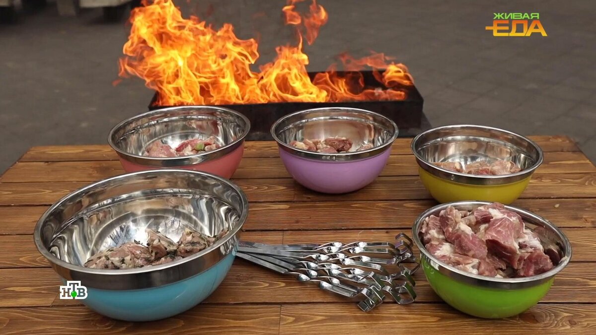 [ Смотреть видео на сайте НТВ ] В шашлычный сезон часто возникают споры: в чем мариновать мясо — в уксусе, кефире или вообще в минералке? Как найти баланс между мягкостью мяса и приятным вкусом? Есть не совсем привычные рецепты шашлычного маринада, а один из них даже разработан учеными. Бренд-шеф сети ресторанов и большой фанат шашлыка Кирилл Еселев взял одинаковое мясо (классическую свиную шею) и замариновал его пятью разными способами, каждый из которых в чем-то самый-самый. Самый ароматный маринад Маринад №1 в Сети называют самым ароматным. Солируют здесь листья мяты в компании с чесноком, растительным маслом и белым вином. Мясо должно провести в холодильнике 10–12 часов, что актуально для большинства рецептов. Кирилл Еселев, бренд-шеф: «Маринад достаточно смелый, как и набор продуктов. Я в летний период с трепетом отношусь к мяте и всему, что с ней связано, любым соусам и заправкам, поэтому, думаю, что результат будет неплохой. Как минимум это интересно». Маринад для самого мягкого