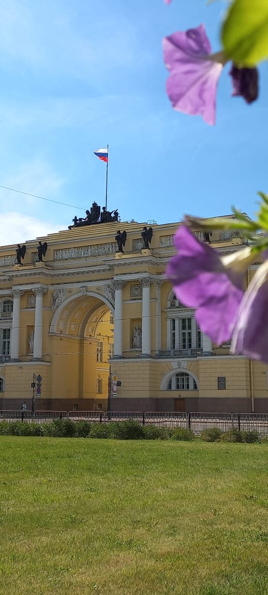 День 4. Часть 1. Этот день выдался очень погожим нам на радость. Мы решили просто погулять по городу, посетить особо любимые места, ведь завтра нам уезжать… Первым делом, конечно же, пошли на Дворцовую площадь. Если в прошлом году мы с неё начинали знакомство с городом, то в этом году решили оставить напоследок. По Невскому проспекту прошли мимо Казанского собора, через Арку Главного штаба вышли к Александровской колонне. А потом мимо Адмиралтейства к Исаакиевскому собору. Снова какое-то время я наслаждалась этим величественным великолепнейшим строением. Снова прочувствовала его мощь и силу. Снова время побежало мимо. Почувствовав необходимость в отдыхе, мы решили плавно двигаться обратно. Было время обеда и мы с удовольствием зашли в грузинский ресторан. Бизнес-ланч был шедевральным: тёплый салат из курицы, редиса, свежих и маринованных огурцов, зелени и интересной заправки; горячий лаваш; хачапури и ягодный морс. Мой желудок получил истинное наслаждение! Мы не смогли всё доесть, еды