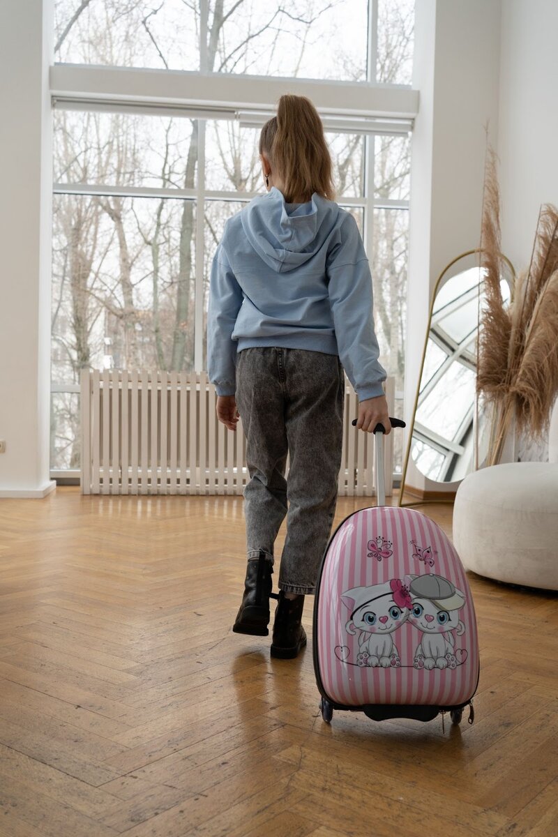 Важно, чтобы чемодан был легким и подходящим по размеру. Чемодан должен быть не выше пояса ребенка, что обычно составляет примерно половину его роста. Например, для ребенка ростом 120 см оптимальная высота чемодана — около 60 см. Вес пустого чемодана не должен превышать 10-15% от веса ребенка.