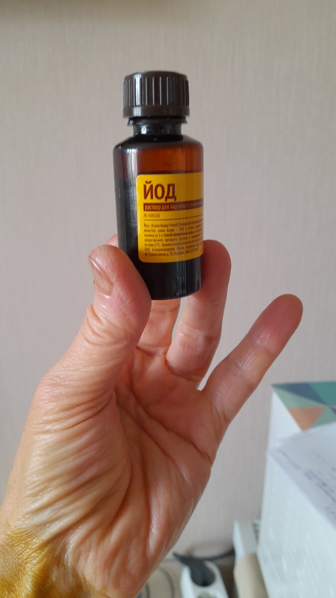 Как самостоятельно можно проверить и восполнить дефицит йода. Надо нанести на внутреннюю часть предплечья йодную сеточку и проследить, когда она исчезнет. Если это произойдёт уже через 2-3 часа, то йода в организме недостаточно. А дефицит йода, оказывается, восполняется просто, при нанесении его на кожу, особенно если йод поступает сразу в кровь, например, при обработке ранки. У меня ранки не было, поэтому я решила намазать йодом область кисти, где обычно прощупывается пульс. Там кожа настолько тонкая, что даже видны и отчетливо выделяются вены. Так что хочется верить, что необходимое количество йода все же попало в мою кровь. Ну и, конечно же, я использую йодированную соль. Эндокринолог меня заверил, что в 5 граммах йодированной соли содержится суточная доза йода. Ещё больше полезных советов и рекомендаций специалистов читайте в моей подборке "ПЕРВАЯ САМОПОМОЩЬ"