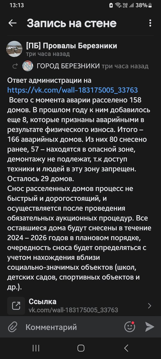 Очередная отписка от администрации.