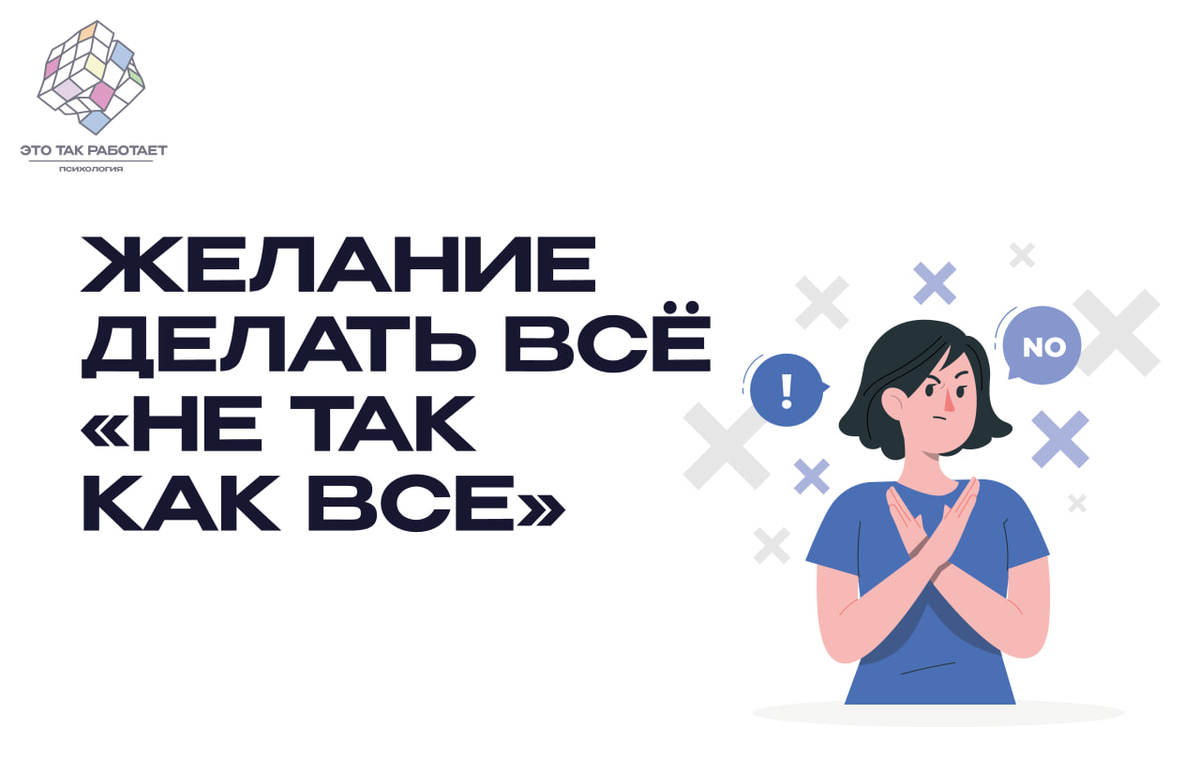 А вы замечали, что многие делают все наоборот? Это свойственно детям, так как через личный протест происходит сепарация от родительской фигуры, но вот если она не завершена, то во взрослом возрасте, человеку будет хотеться делать всё наоборот и быть против всех”. Иногда это затягивается на всю жизнь, и желание показаться самостоятельной и самодостаточной личностью, которая не следует типичным правилам так и не удовлетворяется.