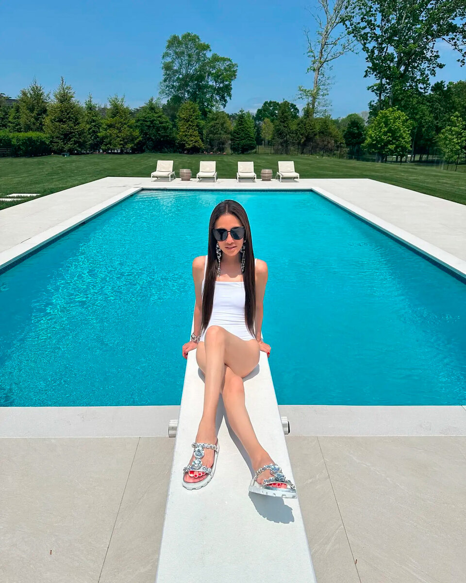 В свои 74 года Вера Вонг выглядит просто потрясающе! В понедельник на своей странице в соцсетях знаменитый дизайнер поделилась солнечными фотографиями из Хэмптонса. На снимках, приуроченных к Дню памяти павших, 74-летняя Вонг выглядит на несколько десятков лет моложе. Она позирует на трамплине в белом цельном купальнике с квадратным вырезом и тонкими бретельками. Вера Вонг В подписи к этим кадрам Вонг ссылается на легендарного фотографа знаменитостей Слима Ааронса, который прославился снимками у бассейна, и пишет: «Мой момент как у Слима Ааронса... Счастливого лета !!!». Знаменитый дизайнер свадебных платьев дополнила свой образ длинными серьгами с кристаллами и большими чёрными солнцезащитными очками. Она, разумеется, упомянула свой бренд солнцезащитных очков Vera Wang Eyewear. Кроме того, на нескольких фотографиях Вонг демонстрирует свои подтянутые ноги и босоножки Miu Miu, украшенные кристаллами. Нельзя не заметить и классический красный педикюр. Вера Вонг «Время перед вами бессильн