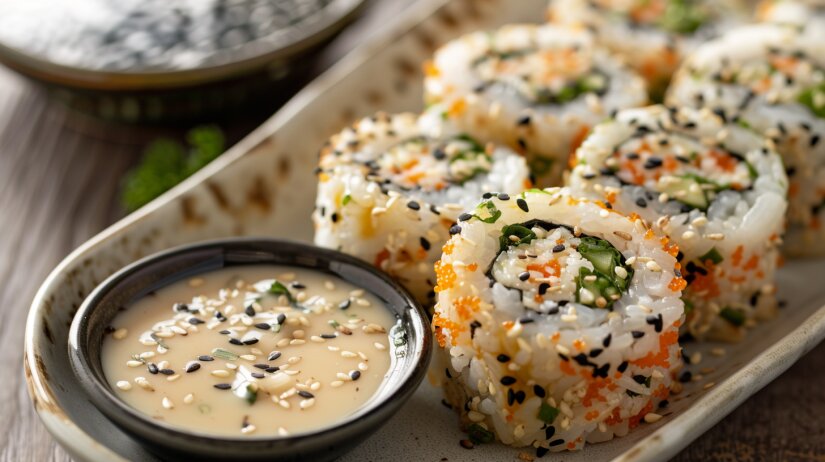 Кунжутный соус для роллов — это ароматное и насыщенное дополнение к японским блюдам, особенно к суши и роллам. История этого соуса восходит к японской кухне, где кунжутное масло и паста тахини часто используются для придания блюдам орехового вкуса и аромата. Этот соус прекрасно сочетается с роллами, сашими и другими блюдами японской кухни. Ингредиенты Пошаговый рецепт Советы по хранению Храните кунжутный соус в герметично закрытой банке в холодильнике. Он сохранит свои свойства в течение 5-7 дней. Перед повторным использованием тщательно перемешайте соус, так как ингредиенты могут расслаиваться. Полезные свойства основного ингредиента Основным ингредиентом соуса является кунжутное масло. Кунжутное масло богато антиоксидантами, витаминами Е и В, а также минералами, такими как кальций, магний и фосфор. Оно помогает улучшить здоровье сердца, укрепить кости и поддерживать здоровую кожу. Интересные факты о соусе