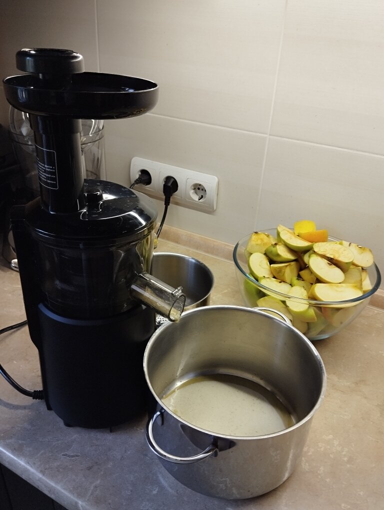 Артикул 37838807 Покупали соковыжималку пару лет назад. Первое время нужно присопособиться, какими кусочками и как закладывать продукты. Отверстие маленькое. Приходиться все резать. Дальше как обычно. Закидываем яблоки, с одной стороны выходит сок, с другой жмых. Делала сегодня сок из яблок. Сок получается с мякотью. Мы такой любим. Жмыха мало. Пены много. Убрала пену. Почти стакан пены получился. Сок будет храниться в холодильнике несколько дней, пока не выпьем. Вкусный. Разбирать и мыть соковыжималку долго и непросто. Потом это все сушится какое-то время. А потом надо собрать и убрать в коробку. Собирать тоже непросто. Есть смысл пользоваться, если делать сок из большого количества фруктов/овощей. Как будут в продаже помидоры сливка, буду делать из них. Это два вида сока, которые мы делаем летом, яблочный и томатный. Иногда к яблокам добавляю другие фрукты. Домашние соки не сравняться с покупными. Очень вкусные!
