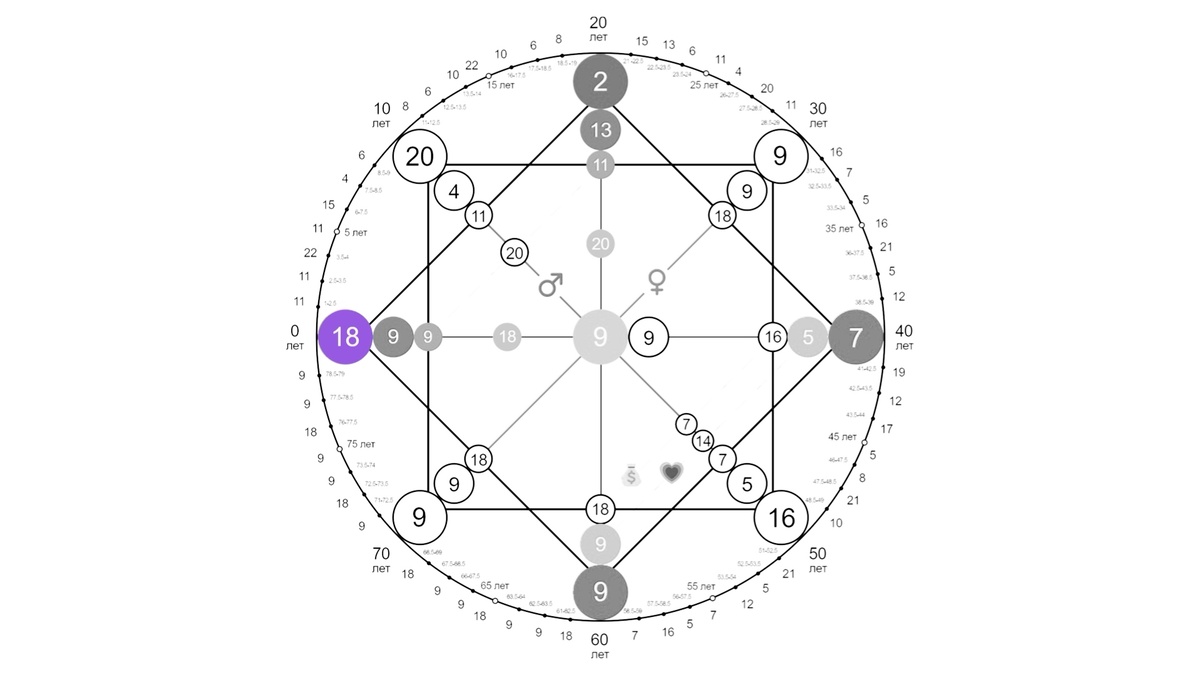 Давайте посчитаем главные энергии вашего личного квадрата в матрице на примере моей даты рождения - 18.02.1996 🌑 🟣 Первая энергия в крайнем левом фиолетовом кружке, число вашего рождения. Это ваш портрет, первое впечатление, которое вы производите на людей, ваша «маска» для общества и личные качества. Помним, что старших арканов таро 22. Если ваше число рождения вписывается в промежуток от 1 до 22, то смело записываем его в кружок. Если число рождения больше 22, то складываем две цифры между собой. Например 23 = 2+3 = 5, значит в портрет мы записываем число 5 и так далее. Я родилась 18 числа, мне ничего складывать не нужно, записываю как есть. 🟣 Вторая энергия ваш месяц рождения, верхний фиолетовый кружок. Это ваша связь с высшим «Я», то откуда мы берём энергию, что нас вдохновляет, наши таланты. Тут ничего складывать не нужно, т.к. в году двенадцать месяцев, поэтому в него смело записываем месяц вашего рождения. В моём случае, это число 2. 🔴 Третья энергия крайний правый красны