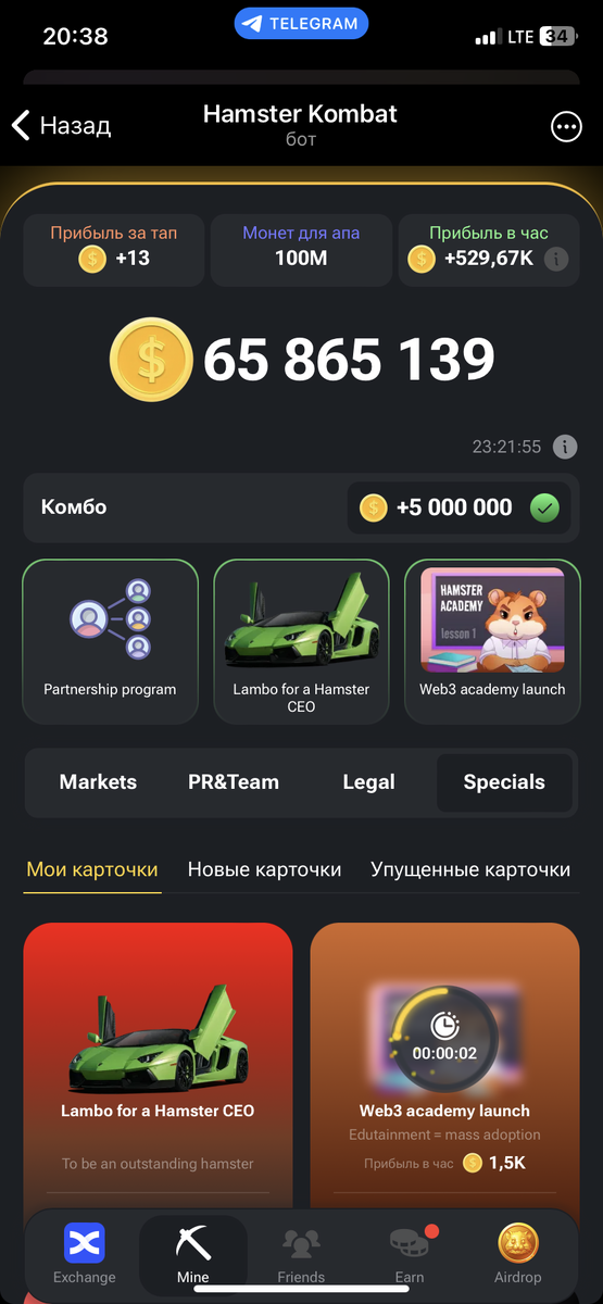 Lambo for a Hamster CEO (Вкладка Specials)