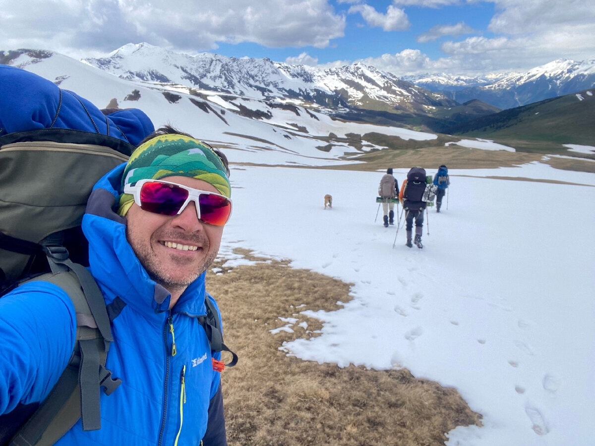 На днях сходили в поход из Теберды в Архыз. За 4 дня прошли 75 км, преодолели 4 перевала и сменили множество долин рек. Первый день устроил нам проверку на прочность. Весь день шел затяжной дождь, переходящий в снег. На первый наш перевал - Муху поднимались в густом тумане. Проверку погодой мы прошли успешно и небеса послали нам уютный кош, в красивейшем месте. В нем мы спрятались от непогоды и провели первую ночь. В Теберде за нами увязался пёс, которому мы дали имя «Оленёнок». Утро на Марке встретило нас заснеженными соснами и солнечными лучами, пробивающимися сквозь туманную дымку. Не хотелось покидать это уютное место, но план есть план. Сегодня нам предстоял длинный переход 22км: по долинам Марки, Аксаута и подъемом по ущелью Ходюка. На стоянке за мостом через Марку обнаружили записку недельной давности группы туристов из города Волжский. Ребята прошли с перевала Ходюк в сторону Теберды. В месте слияния рек Аксауата и Марки расположен заброшенный аул Красный Карачай (Схаут). Когда