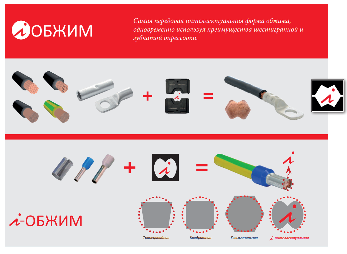 Так, брендом был разработан совершенно новый метод i-опрессовки, который заключается в применении созданных компанией обжимных матриц уникального профиля. Таким образом электросоединения получают большую прочность на разрыв, не теряя токопроводящих способностей.