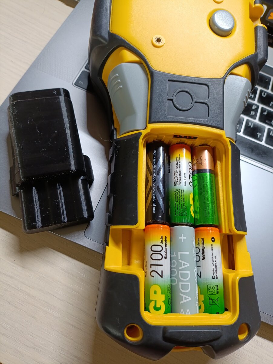 Купил когда-то давно маркировщик Brady, но одна вещь бесила больше всего - питается от 6 батареек формата АА. Причем из-за того, что аккумуляторы имеют напряжение 1,2В вместо привычных 1,5В для одноразовых батареек, то и маркировщик всегда рисует не полный заряд и садится достаточно быстро. Аккумулятор для него есть, от производителя, но производитель ушел в небытие в РФ, а запчасти, как и аккумулятор стали стоить немыслимых денег. Если сам девайс я брал с рук за 4 тысячи рублей, то сейчас на юлито такие же стоят уже 12-15 тысяч, а оригинальные аккумуляторы в магазине стоят около 10 тысяч рублей, с рук такого не нашел поблизости. Поэтому решено было превозмочь и облегчить себе жизнь. Модельку купил на cults3d. Пара часов печати из PET-G, пара банок 18500 и плата зарядки и можно собирать. Автор, к сожалению, не положил никакой инструкции, чисто модель корпуса из двух половинок. По фоткам оригинального аккумулятора понял, что пятаки должны быть по диагонали друг от друга, благо автор под
