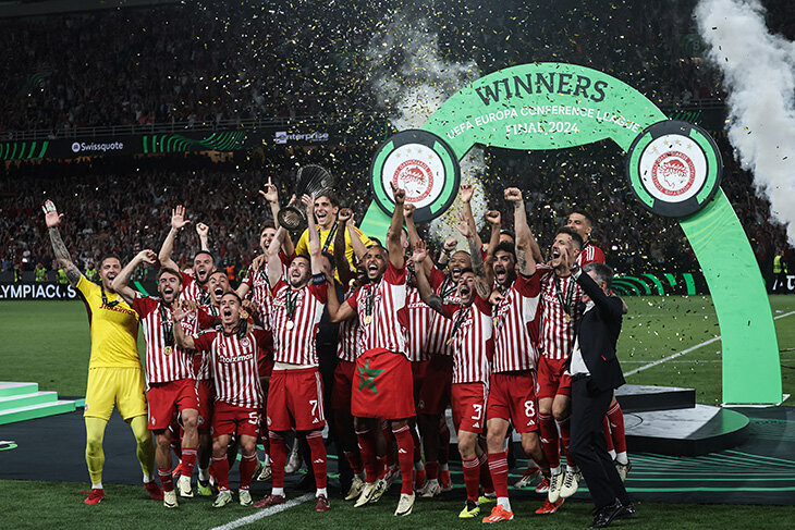 «Олимпиакос» – победитель Лиги конференций-2023/24. В финале обыграли «Фиорентину» – впервые за долгое время еврокубок выиграл клуб не из привычной пятерки топ-лиг.