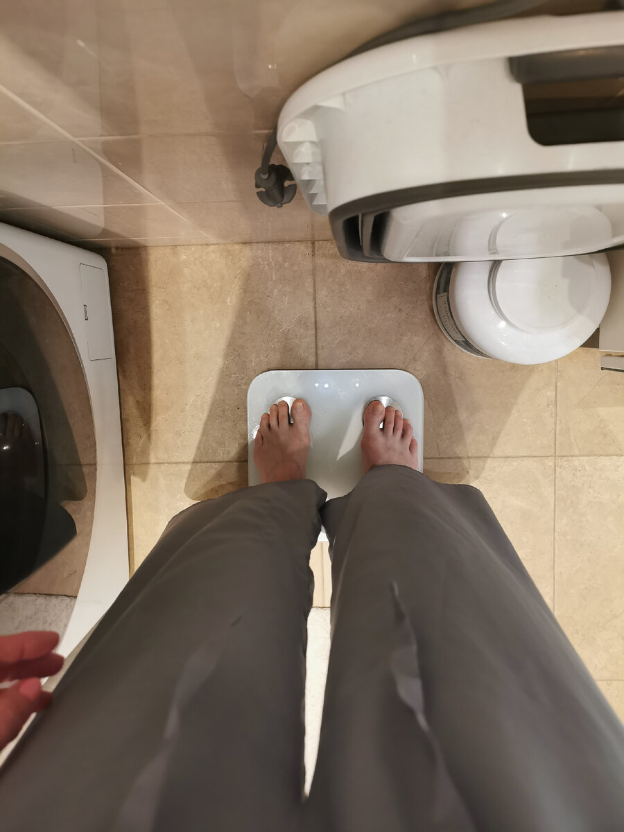 Да, все это поместилось в один день. А ещё работа и тонирование волос, а вечер так вообще во дворе за болтовней Но утром я сделала то, что не делала уже месяц, наверное. Взвесилась Без сюрпризов🤣 Я стала ближе желаемому весу на минус 1,6 кг. Ну то есть дальше. Ладно, чего же ещё ждать, если не следить за питанием и есть много). Пофиг, прорвёмся. Зато по активности все хорошо, а значит, сердце в норме сохраняю, мышцам не даю деградировать и вообще молодец, немножечко походила сегодня. И мужа с сыном вечером с собой взяла Сегодня нетрадиционной для меня - не платье. Шла на работу пешком, там предстояла куча беготни, остановилась на лёгких широких брюках и футболке. Получилось классно На фото ещё процесс моих сборов, очень удачно получилось сочетание полотенцесушителя и розетки - идеальное место повесить на плечиках вещь и быстро её отпарить. Прям на утренние сборы. Отпариватель у меня недорогой, ручной, уж лет пять живёт и все с ним хорошо. На вот такие быстрые сборы - пару вещ