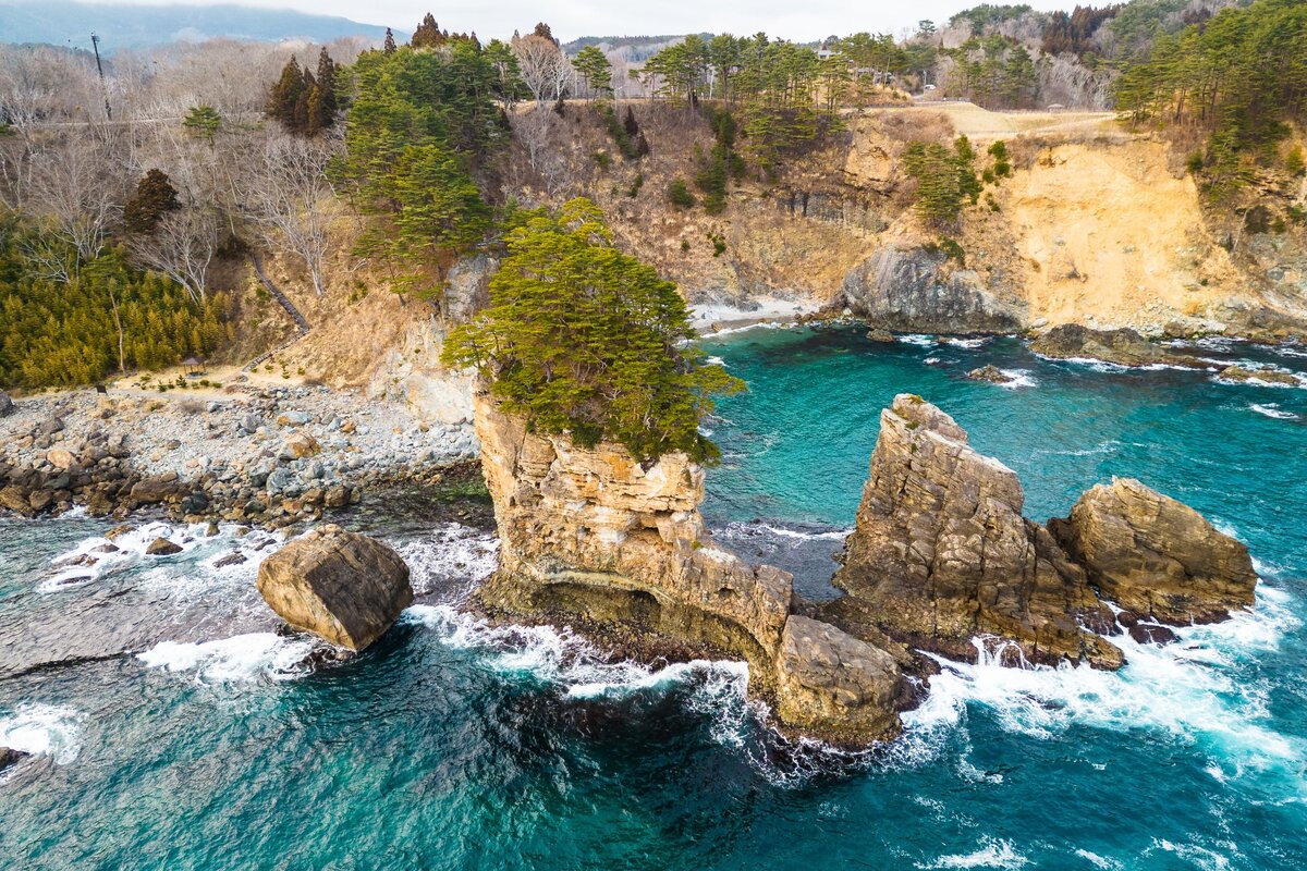 Скалы Китаямадзаки - это замечательные скальные откосы на побережье Тихого океана, в деревне Танохата на северо-востоке острова Хонсю. Природный объект простирается на восемь километров вдоль береговой линии Японии, а его обрывы достигают кульминации на высоте 200 метров над уровнем моря. Впечатляющими видами можно полюбоваться во время бодрящей прогулки по тропе, вдоль которой было устроено несколько обсерваторий. Китаямадзаки, настоящая жемчужина побережья Санрику, которую иногда называют «морскими Альпами», без сомнения, являются обязательными для посещения путешественниками в этом районе.