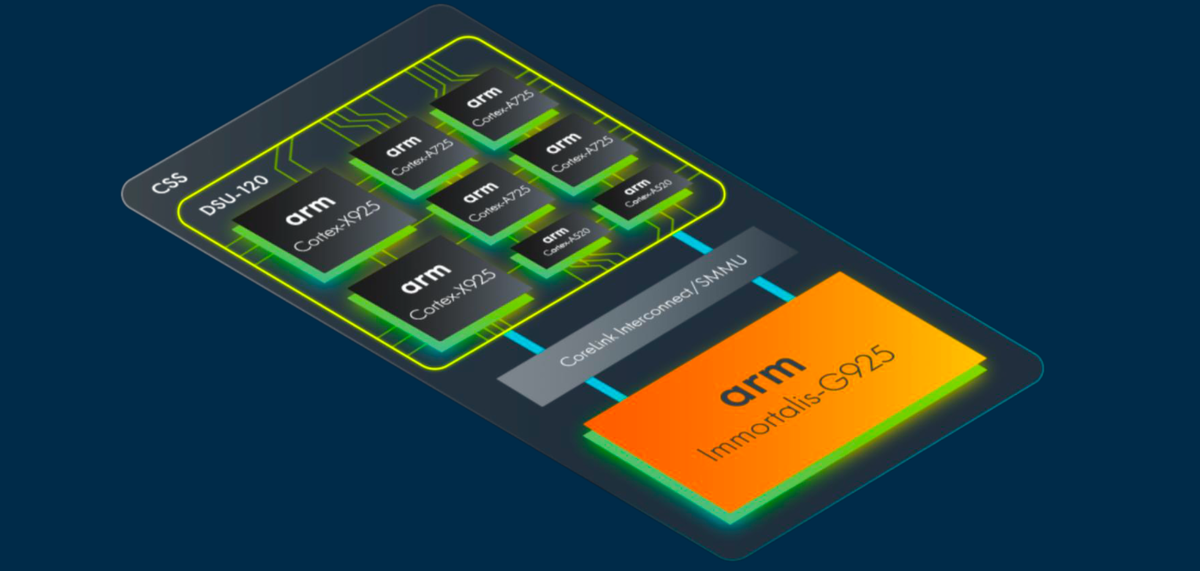 Компания Arm анонсировала два новых процессорных ядра для процессоров флагманских смартфонов. Поскольку Qualcomm переходит на собственные ядра Nuvia, их можно будет найти в высокопроизводительных чипах от MediaTek и Samsung. Ядро, ранее известное как Cortex-X5, теперь переименовано в Cortex-X925. С другой стороны, Cortex-A725 приходит на смену прошлогоднему Cortex-A720. На этот раз новых эффективных ядер, похоже, не будет, но ядро Cortex-A520 будет на 15% более энергоэффективно, чем прошлое. Arm утверждает, что ядра Cortex-X925 обеспечивают улучшение однопоточной производительности до 36%, согласно данным Geekbench. Ядра построены на новой архитектуре Arm v9.2, которая разработана для искусственного интеллекта и обеспечивает двузначный прирост IPC. В результате ядро на 41% быстрее, чем Cortex-X4 в Llama Q4. Также ядру ЦП может быть выделено до 3 МБ кэша L2. Аналогично, Cortex-A725 на 35% более энергоэффективен по сравнению с Cortex-A720. Общие улучшения включают увеличение скорости про