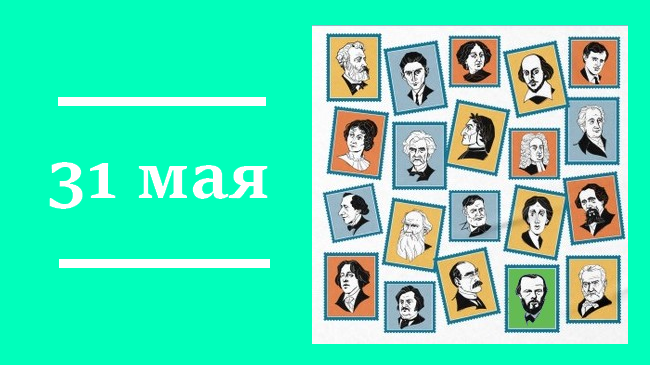 Юбилеи: 205 лет американскому поэту Уолту Уитмену (Walt Whitman, 1819-1892) 125 лет советскому писателю Леониду Максимовичу Леонову (1899-1994) Дни рождения советский писатель Константин Георгиевич Паустовский (1892-1968) немецкий детский писатель и поэт Джеймс Крюс (James Krüss; полное имя — Джеймс Якоб Хинрих Крюс, 1926-1997) белорусская писательница, лауреат Нобелевской премии по литературе 2015 года Светлана Александровна Алексиевич (1948) французский писатель Серж Брюссоло (Serge Brussolo, 1951) российская писательница Алёна Жукова (настоящее имя — Ольга Григорьевна Жукова, 1957) ирландский писатель Джон Коннолли (John Connolly, 1968) Дни памяти польский поэт, драматург и переводчик Леопольд Генрик Стафф (Leopold Henryk Staff; 1878-1957) бельгийский поэт и прозаик Виллем Элсхот (нидерл. Willem Elsschot; настоящее имя — Альфонс Йозеф де Риддер ,1882-1960) советский писатель Анатолий Степанович Иванов (1928-1999)