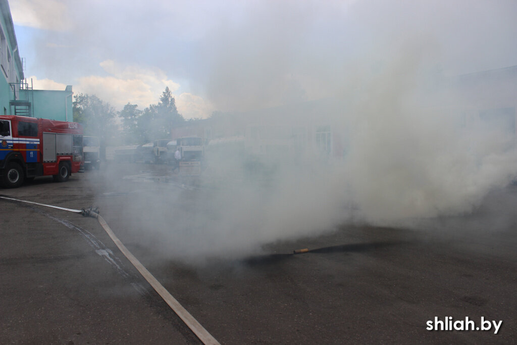 Тактико-специальные учения МЧС прошли на территории перерабатывающего предприятия «Сморгонские молочные продукты», темой которых было ведение аварийно-спасательных и других неотложных работ при ликвидации чрезвычайных ситуаций на объектах с наличием опасных химических веществ. В производстве молочного завода используется химически опасное вещество – аммиак. И хотя его количество небольшое, но в возможную зону химического заражения попадают работники данного объекта. По легенде, на территории предприятия произошел взрыв, в небо поднялся столб серого дыма. О ЧП известила сирена. Группа пожаротушения объекта развернула штаб для координации действий, и до прибытия пожарных расчётов организовала тушение очага возгорония. Вскоре в зону пожаротушения прибыли подразделения районного отдела МЧС. Работники МЧС в специальных защитных костюмах эвакуировали пострадавших, для ограничения распространения ядовитого облака была создана водяная завеса. Практическая отработка вводной проводилась для перс