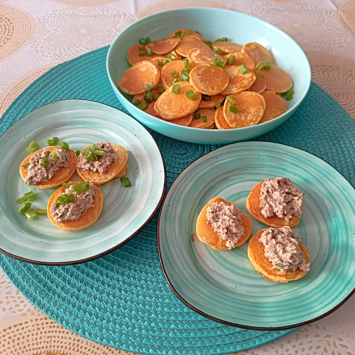 Здравствуйте! Завтрак сегодня порадовал! Спешу поделиться с вами! ) И радостью и рецептами ) Ми-ми-мини-оладьи с рыбной намазкой Я планировали эти ми-мишные оладышки. На выходные, потому что, как я понимала, потребуется время и терпение ))) Но погода у нас наладилась и я уже не планирую стоять у плиты в выходные ))) Обычно их красиво подают с ягодами и листиками мяты... Но четверг же! Рыбный день ))) И риет из консервированной рыбы от Алёны, я тоже планировала! Он взорвал мне мозг своей простотой и быстротой. Что интересно - сама я не додумалась ))) *Ссылка в конце публикации. В итоге предлагаю вашему вниманию эту финальную версию ) Получилось очень прикольно и вкусно! ) Для оладьев, на 2 порции: Мука нутовая (или любая безглютеновая) ~ 70 гр Яйцо - 1 шт Кефир - 150 мл, у меня был жидкий кефир По обыкновению я смешала ингредиенты с вечера и убрала в холодильник. Утром добавила по 2 щепотки соли и разрыхлителя. Разогрела и смазала сковороду промасленной кисточкой. У меня есть так