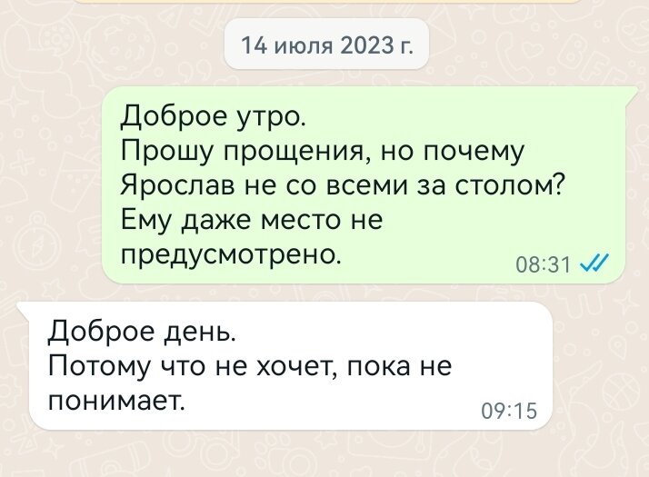Может ребёнок и хотел бы со всеми играть, тогда должен был бегать вокруг стола, потому что возле стола стульчика для моего ребенка не было предусмотрено.