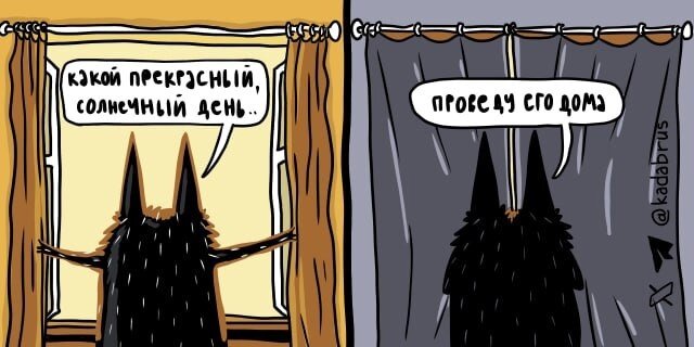 Художник по имени Константин Кирилюк, также известный в сети под ником kadabrus, в своем телеграм-канале под названием Типичные *беня рисует смешные комиксы об одном слегка депрессивном волке. В одном из выпусков этот персонаж решил четко и емко выразить свое мнение по поводу наступления солнечных деньков.