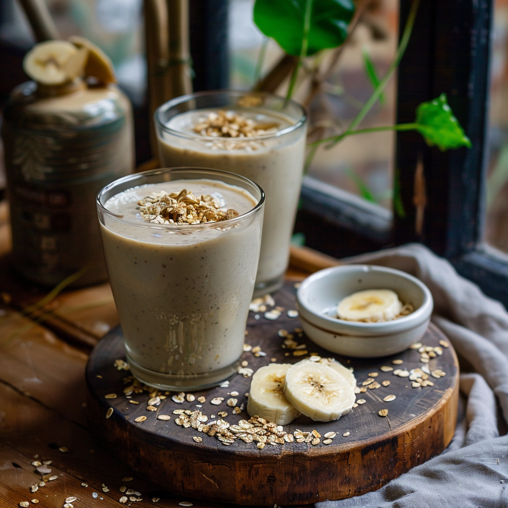 Забудьте о традиционной овсянке! Представляем вам рецепт невероятно вкусного и питательного смузи, который зарядит вас энергией на весь день. Этот напиток — идеальный выбор для тех, кто ценит свое время и здоровье. Ингредиенты: Растительное молоко (или коровье, если Вы употребляете молочку) — 500 мл; Зрелые бананы — 2 штуки; Овсяные хлопья — 2-3 столовые ложки; Молотая корица — 1 чайная ложка. Приготовление: 1. Для начала подготовьте ингредиенты: охладите молоко и бананы, чтобы смузи получился освежающим. 2. Влейте молоко в блендер, добавьте овсяные хлопья и дайте им немного разбухнуть — около 5 минут. 3. После этого добавьте бананы и корицу, затем тщательно взбейте до получения гладкой текстуры. 4. Разлейте смузи по бокалам и, если хотите, украсьте каждый напиток щепоткой корицы. Заключение: Этот смузи не только восхитительно вкусный, но и чрезвычайно полезный. Овсянка богата витаминами и минералами, а также благотворно влияет на пищеварение. В сочетании с бананом она делает напиток