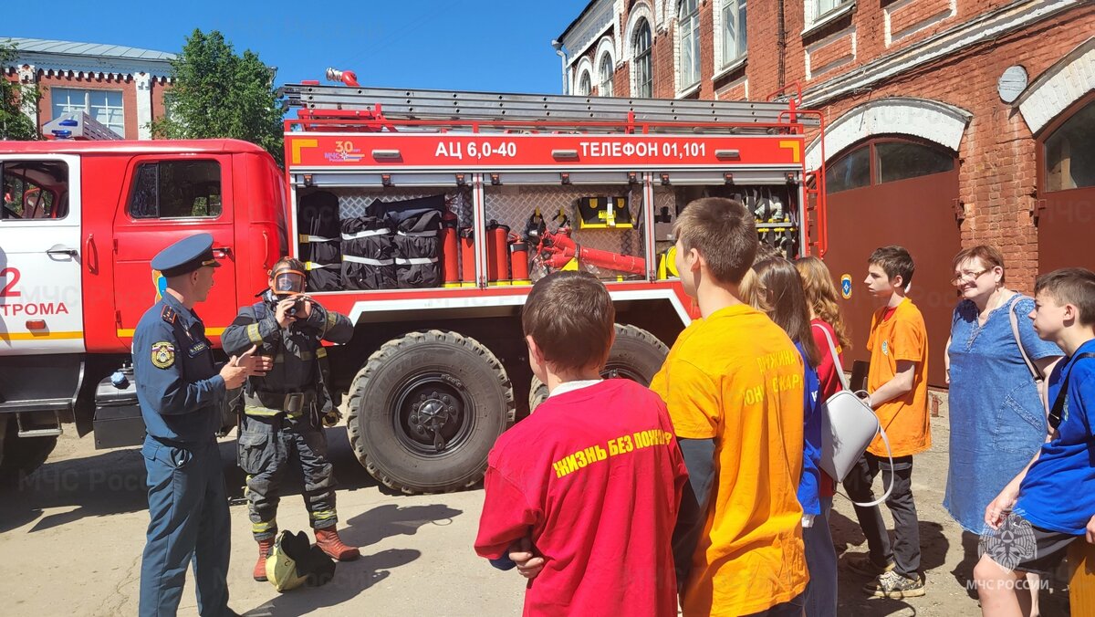 Сегодня в рамках «Всероссийской недели безопасности» в пожарно-спасательных подразделениях Главного управления МЧС России по Костромской области сотрудники МЧС России проводят Дни открытых дверей для детей и подростков. Школьники региона знакомятся с профессией огнеборца, изучают быт и условия службы дежурных караулов, повторяют правила безопасности жизнедеятельности. Первое большое мероприятие организовали сотрудники чрезвычайного ведомства совместно с Костромским региональным отделением Всероссийского добровольного пожарного общества на территории 2 пожарно-спасательной части по охране города Костромы. Гости - дружина юных пожарных «Экипаж» из школы № 18. Юных гостей на фасаде части поприветствовал начальник караула 2 ПСЧ Сергей Голубев. Он рассказал ребятам о структуре пожарно-спасательной части, особенностях работы современных пожарных, их повседневной службе. Самая интересная часть экскурсии – знакомство со специальной техникой, применяемой при борьбе с огнем и проведением аварийн