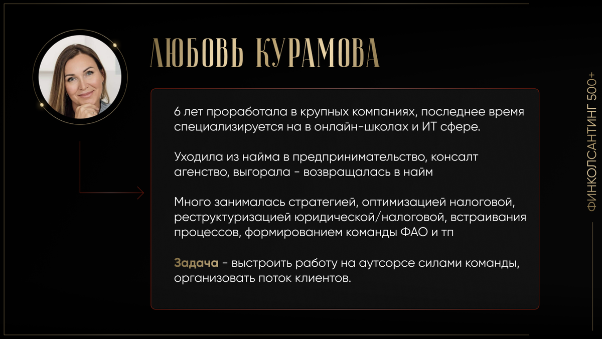 Выкладываю тезисное описание стратегии, выработанной на разборах. Кейс Любови Курамовой: