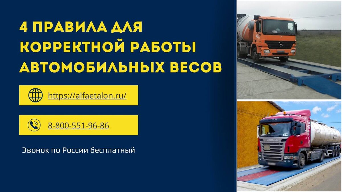 Автомобильные весы широко распространены во всех отраслях промышленности. Их используют для определения массы гружёных и не гружёных автомобилей. Если вы используете на предприятии автомобильные весы, соблюдайте 4 простых правила, чтобы весы работали корректно и эффективно. 1. С оборудованием должен работать персонал, прошедший инструктаж; Для правильной эксплуатации автомобильных весов важно привлекать обученных и квалифицированных операторов. 2. Выполняйте профилактический и технический осмотр оборудования; Перед началом каждой смены весовщик должен осмотреть грузоприёмную платформу весов. Для режима взвешивания весовщику необходимо выдержать весоизмерительный прибор во включённом состоянии не менее 10 мин. Время от времени нужно очищать весы и пространство под ними от загрязнений. 3. Соблюдайте нормы эксплуатации;