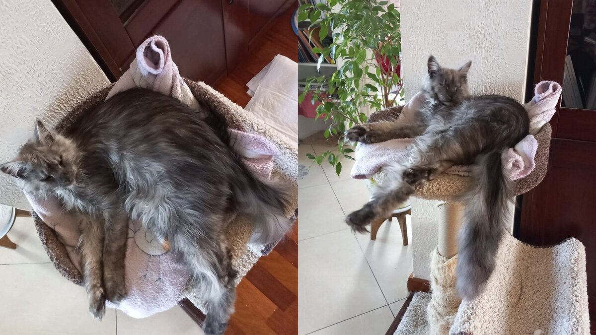 Недавно мы рассказывали о кошке Дорис породы мейн-кун, от которой владельцы отказались из-за особенности строения мордочки. Глаза животного посажены слишком глубоко, что придает ей неприветливое выражение и привело к тому, что за областью вокруг глаз требуется ежедневный несложный уход. Кошкой стала заниматься волонтер, курирующая мейн-кунов. После выхода новости о Дорис для нее нашлась семья среди наших читателей. Куратор кошки Екатерина рассказала Питомцам Mail.ru, что звонков и сообщений от желающих забрать Дорис было много и когда кошка уже нашла семью, вслед за ней пристроились еще четыре бездомных мейн-куна, которые жили на передержках, в том числе дымчатые Дрима и Холли. «У Дримы и Холли все отлично, — пишет их новая хозяйка. — Контакт с человеческим составом семьи отличный. Дрима стала с нами общаться в течение суток, как забрали, а вот Холли… такое ощущение, что ее обижали. Но и она начала контактировать дня через два. Потихоньку завоевываем доверие». Порода не гарантия счаст