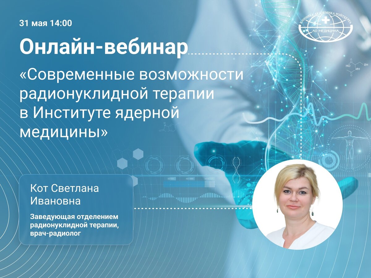 31 мая в 14:00 по московскому времени состоится вебинар, посвященный современным возможностям радионуклидной терапии.