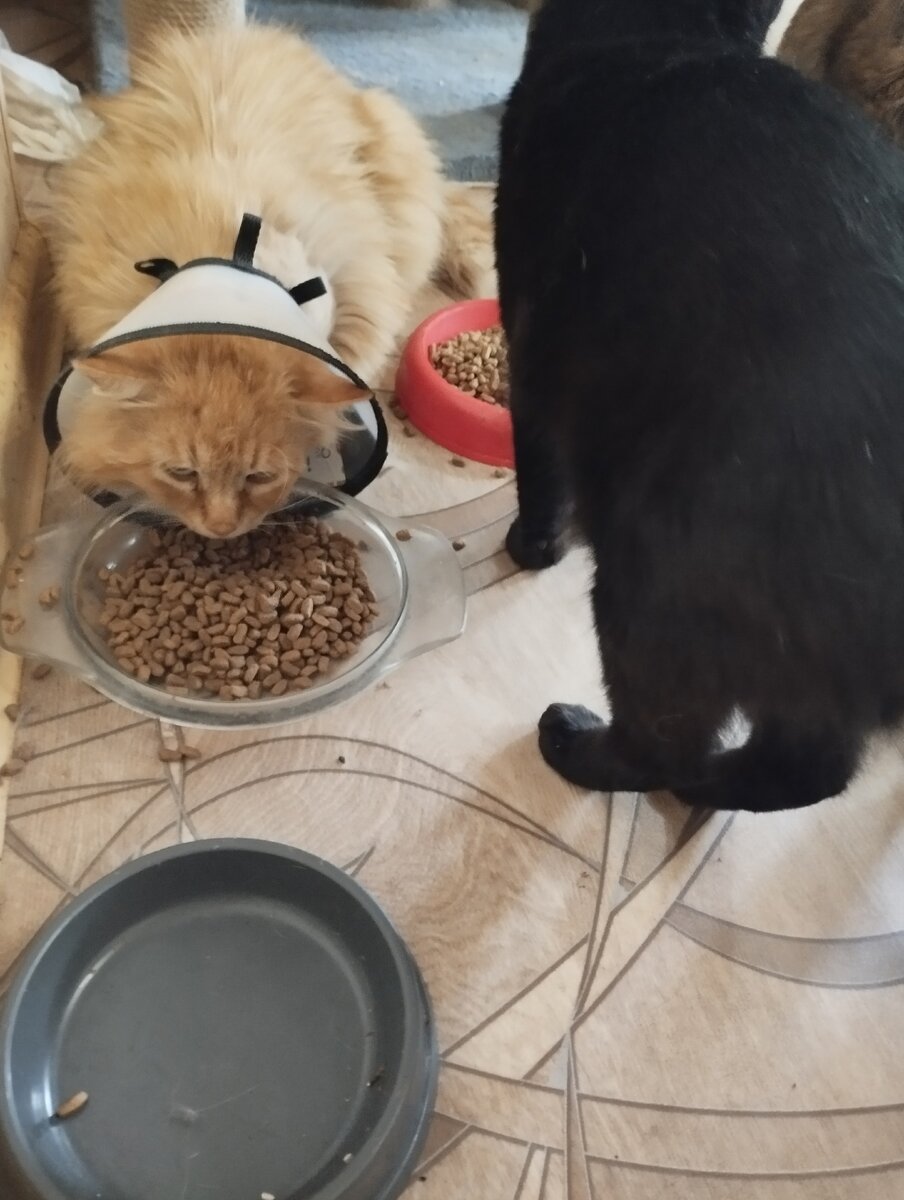 Ну наконец-то хоть котик Рыжик из сельского мини-приюта Людмилы Ч. сегодня порадовал. После операции прошла почти неделя, а он все лежит никакой. Хозяйка уже начала бояться, что у него что серьёзное, ведь анализы мы не делали, а он котик старый, да еще и наркоз. Понятно, что в воротнике животные чувствуют себя неловко, но что бы так долго! Вчера вечером он начал пытаться себя вылизать, ну, а сегодня усиленно пытается сбежать на улицу. Значит все у него хорошо, рана заживает, мы ее обрабатываем, в четверг надо ехать в клинику и снимать дренаж. Слава Богу Рыжик в порядке, теперь хоть за него может волонтер быть спокойна, а то у нас в последнее время настоящий марафон, кто быстрее заболеет. Друзья! От всей души благодарит всех и каждого за помощь. Поездки в клинику обходятся очень дорого и нам без вашей помощи не справиться. В приюте более семидесяти животных, много стареньких и больных хвостиков, которых надо лечить. Спасибо большое, за то, что не бросаете нас 🙏 Берегите себя и своих б