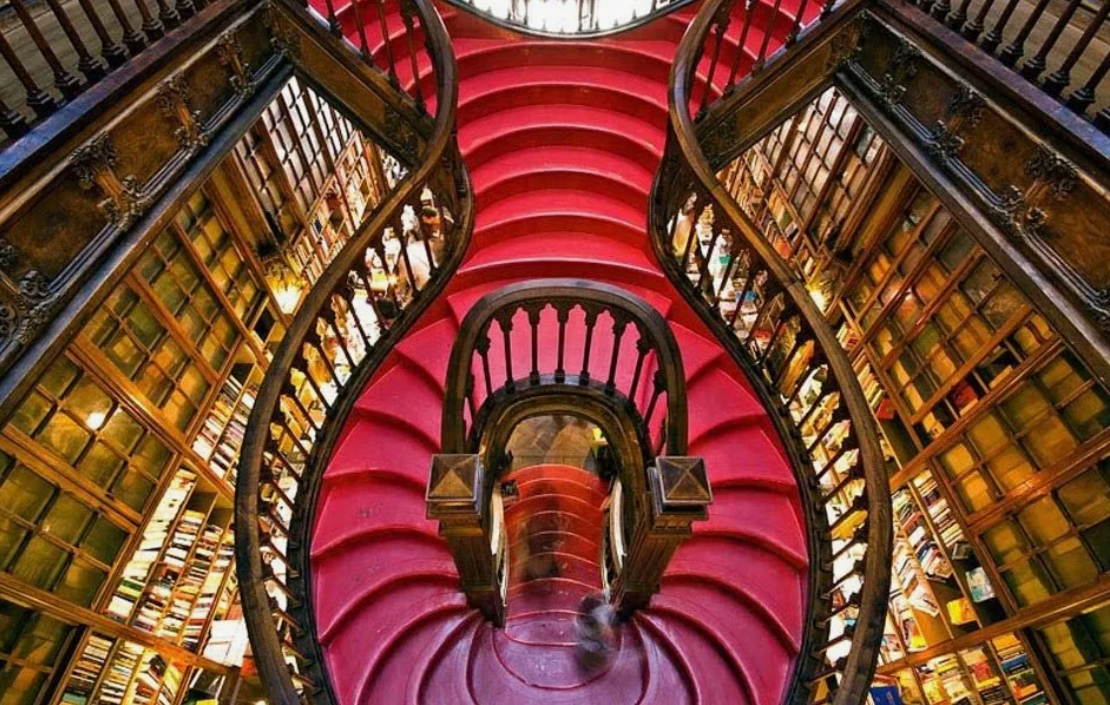 Самая роскошная лестница из этой подборки находится в Португалии. Самое интересное, что ей уже 100 лет. Эта конструкция украшает интерьер старейшего книжного магазина в Порту. Дизайн магазина и лестницы создал инженер Франсишку Ксавьер Эштевеш еще в 1894 году. Представляете, сколько лет прошло, а лестница из дерева так и стоит — и хоть бы хны! Вот, раньше на века делали, не то, что теперь. Сама Джоан Роулинг вдохновлялась этим магазином, чтобы воплотить идеи в библиотеке Хогвартса в своей знаменитой книжке про неудачливого Гарри Поттера. Кстати, некоторым посетителям на этой лестнице становится плохо — кружится голова и они испытывают потерю сознания.