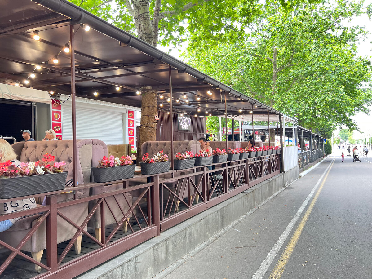 Всем доброго дня! У нас в Сибири сейчас стоит очень холодная и нетипичная погода, всего 6-10 градусов тепла. Мои земляки жалуются и шутят, что с таким летом и зимние вещи убирать не стоит. По примете, если вчерашний день был холодным, то и лето обещает быть таким же. Здесь на юге тоже было прохладно, но сейчас погода восстанавливается. Вчера гуляли по Анапе, было очень комфортно, температура около 20-22 градусов. Розы еще цветут, зелень сочная, народу пока не так много и дышится легко. Фонтаны вовсю работают, открылись все кафешки и рестораны, люди неспешно прогуливаются, отдыхают. Заглянули в столовую «Мама Мия». Мы знаем ее еще со времен, когда искали здесь жилье. Сервис хороший, еда тоже, цены можно посмотреть на фото ниже, если увеличить его. Эта столовая находится у входа на Центральный пляж. На самом пляже тоже открывают новые заведения. Мое внимание привлекло это кафе⤵️ Мне кажется, я увидела его здесь впервые. Уютная зона отдыха на террасе. Внутри тоже очень мило, но туда мы н
