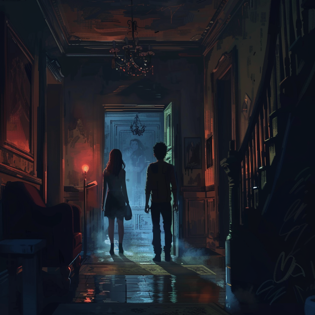 Пройдя через громадные дубовые двери, покрытые пылью и скрипящие от векового молчания, Николь и Крис оказались внутри заброшенного дома-усадьбы. Атмосфера места была пропитана стариной и таинством, старые мебель и