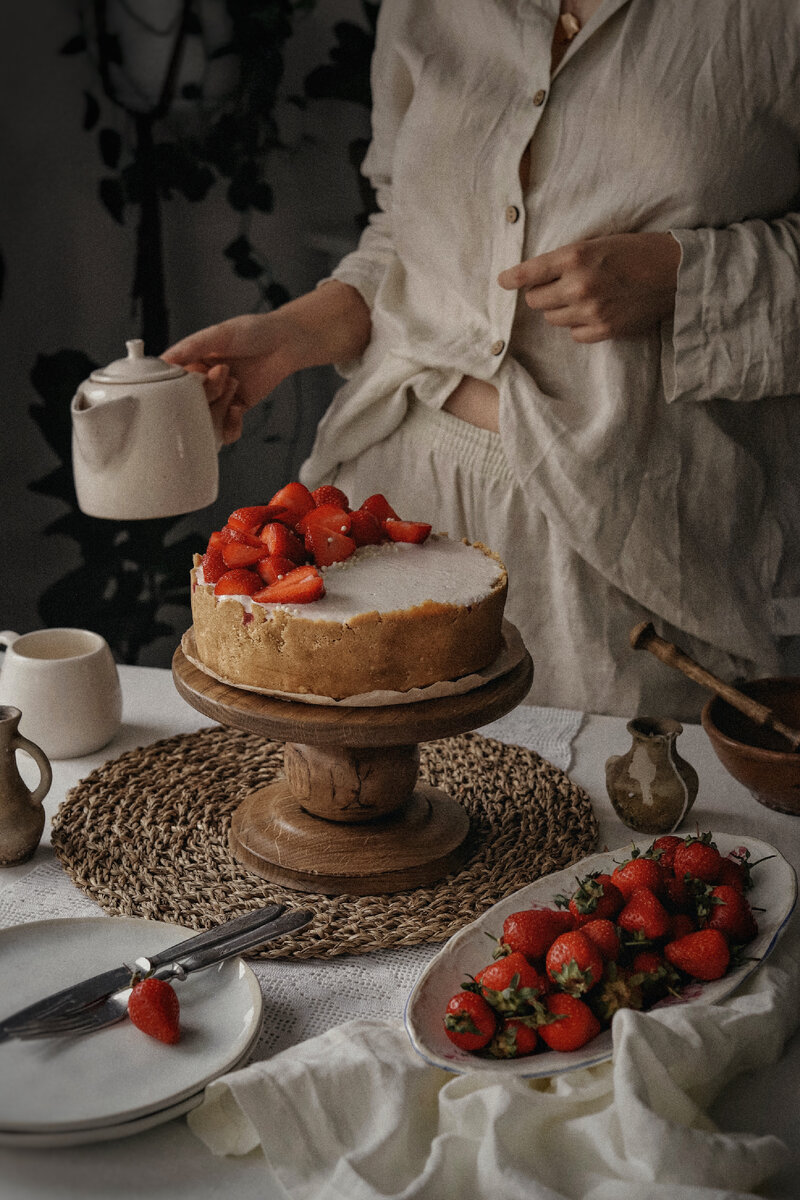 Спустя десятки экспериментов с клубничными чизкейками🥴 я вывела просто бомбический холодный рецепт без выпечки. Запасите побольше клубники и скорее приступайте 🍓 👉🏻Ингредиенты 600г-1кг клубники (чем больше, тем лучше) 250г песочного печенья Сливочное масло 140г Сгущеное молоко 150-180 мл Творожный сливочный сыр 400г Желатин 2 пакетика по 10г Сливки для взбивания 33% 200мл Сахарная пудра 15-20г 👉🏻 Основа: Застелить дно формы раздвигающегося кольца (у меня диаметр формы 20см) бумагой для выпечки или пленкой. Печенье измельчить в крошку блендером, затем перетереть его руками с маслом комнатной температуры. Выложить основу в форму, утрамбовать по дну и стенкам. Убрать в холодильник на полчаса. 👉🏻 Начинка Пакетик желатина 10г залить холодной водой 60мл и оставить набухать на 20 минут. После того, как он набухнет и немного затвердеет, долить 20мл воды и импульсно разогреть желатин до жидкого состояния в микроволновке (достаточно 20 секунд) или на водяной бане, но не кипятить