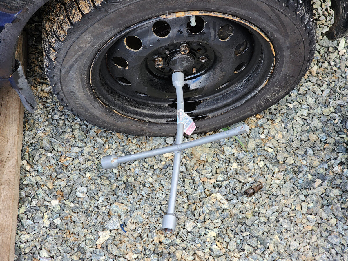 Недавно, во 2-й половине мая, я поменял колёса на летние. В наших краях лучше раньше зимнюю резину не менять - даже в мае может наступить зима На своей Калине я менял колеса в 1-й раз, только в марте её купил. У меня есть профессиональный набор для смены колес: подкатной домкрат, как в шиномонтажках, динамометрический ключ и аккумуляторный гайковерт. О наборе и о том, как работать вот с этим вот всем, я рассказывал в этой статье - не только текст, но и видосы Три колеса открутились гайковёртом вообще на изи. Машина гораздо легче в сравнении с моей Импрезой, ходы подвески тоже существенно меньше, так что домкратом её поднимать проще. Я уже обрадовался лёгкому и быстрому шиномонтажу на Калине, но не долго музыка играла, недолго фраер танцевал. Встрял с передним правым колесом - оно ни в какую не откручивалось Набор инструментов для ремонта дома, на даче, в автомобиле https://market.yandex.ru/cc/7rz6CU?erid=5jtCeReNx12oajvHYbFGuHC. Реклама. ООО «Яндекс Маркет», ИНН 9704254424, erid: 5jtC