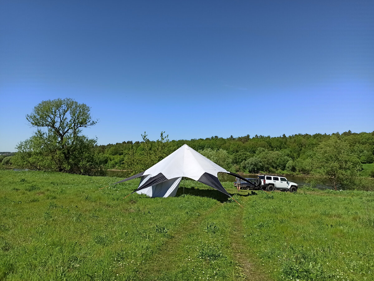 Всегда люблю приезжать на площадку заранее. Договорились начать ставить лагерь с полудня — ещё один участник обещал привезти шатёр. Я по дороге заехал взять аккумуляторную колонку JBL у своего хорошего друга, который занимается травами и чаем. Заодно посидели, пообщались, попили пуэрчика. В итоге добрался до стартовой поляны примерно в 13:00.