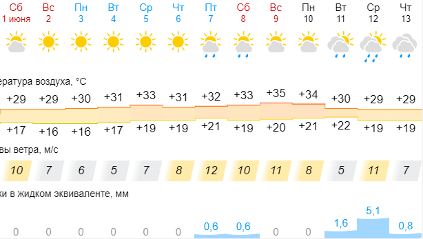 Начиная с первого числа Июня попробую в первый раз жизни за месяц сделать 100 тысяч рублей. Максимально сколько выходило у меня это 80 тысяч, 2 года назад в декабре. Там были различные бонусы и с лёгкостью получилось сделать такую сумму. Все меняется и развивается поэтому и в доходах надо расти. Еще три года назад приходилось работать за 88 рублей в час (в бургер кинг). Позже подняли ставку до 95 рублей в час. Но разве это деньги ? В последние время выходит 500 рублей в час. Не больше не меньше. Теперь я в Краснодаре и работаю на мотоцикле. Думаю что будет максимально тяжело и жарко. Такая погода ожидается: В сильные дождливые дни не буду работать. Чисто математически и на теории такую сумму можно будет заработать. Продеться работать по 12 часов в день в жару под 30 градусов. Почему так думаю ??? Когда были майские праздники заработок сильно просел до 250-300 рублей в час. Это меня не устроило и перешел в другую доставку. Там особо заказов нет, но оплата была хорошая(220 рублей за